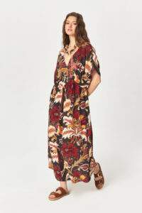 - Maxi length silhouette flowing towards the ankle