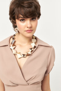 The beige tone enhances its warm, feminine character with a timeless appeal.