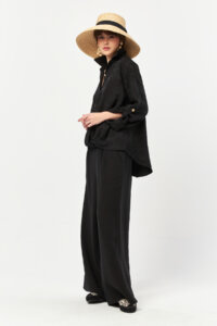- Wide-leg silhouette with fluid movement
