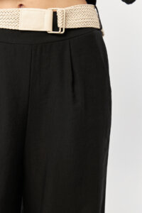 Finished with a matching self-fabric belt included with the pants, the waist can be adjusted for a flattering, defined fit. Side pockets provide everyday functionality while maintaining the minimalist design. Lightweight and breathable, these pants move effortlessly from day to evening, making them a versatile essential for modern styling.