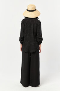 Designed in classic black with a fluid woven structure, Caramel Tie-Belt Tencel Wide-Leg Pants – Black offer a timeless interpretation of the relaxed wide-leg silhouette. The deep tone emphasizes the fabric’s natural drape, creating a clean and elongated look.