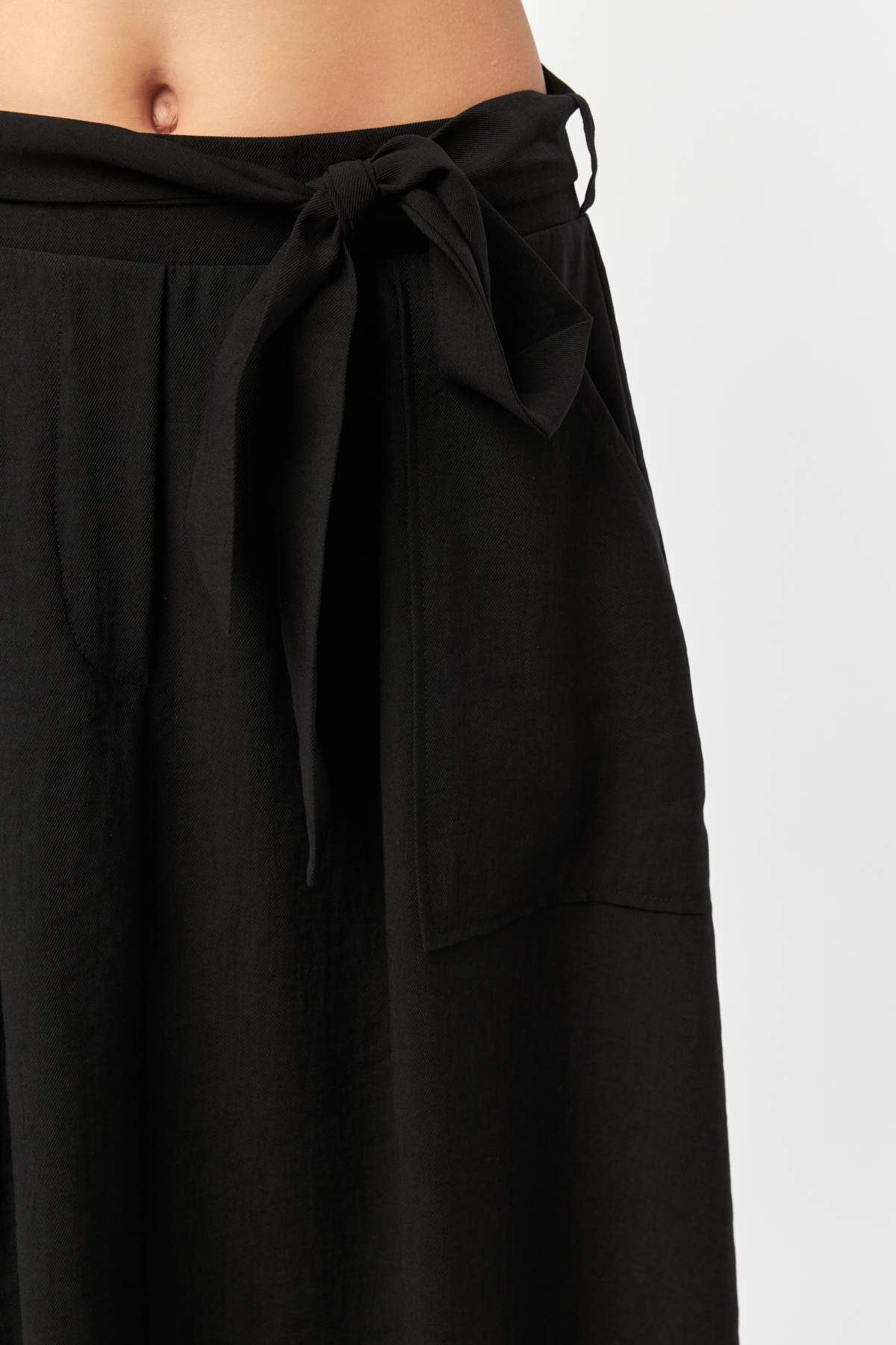 Black Tie-Waist Flow Tencel Skirt