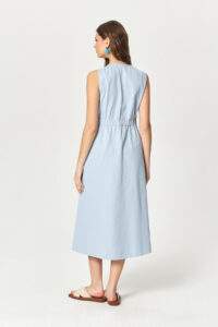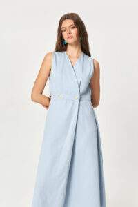 Blue Soft Wrap Cotton Midi Dress