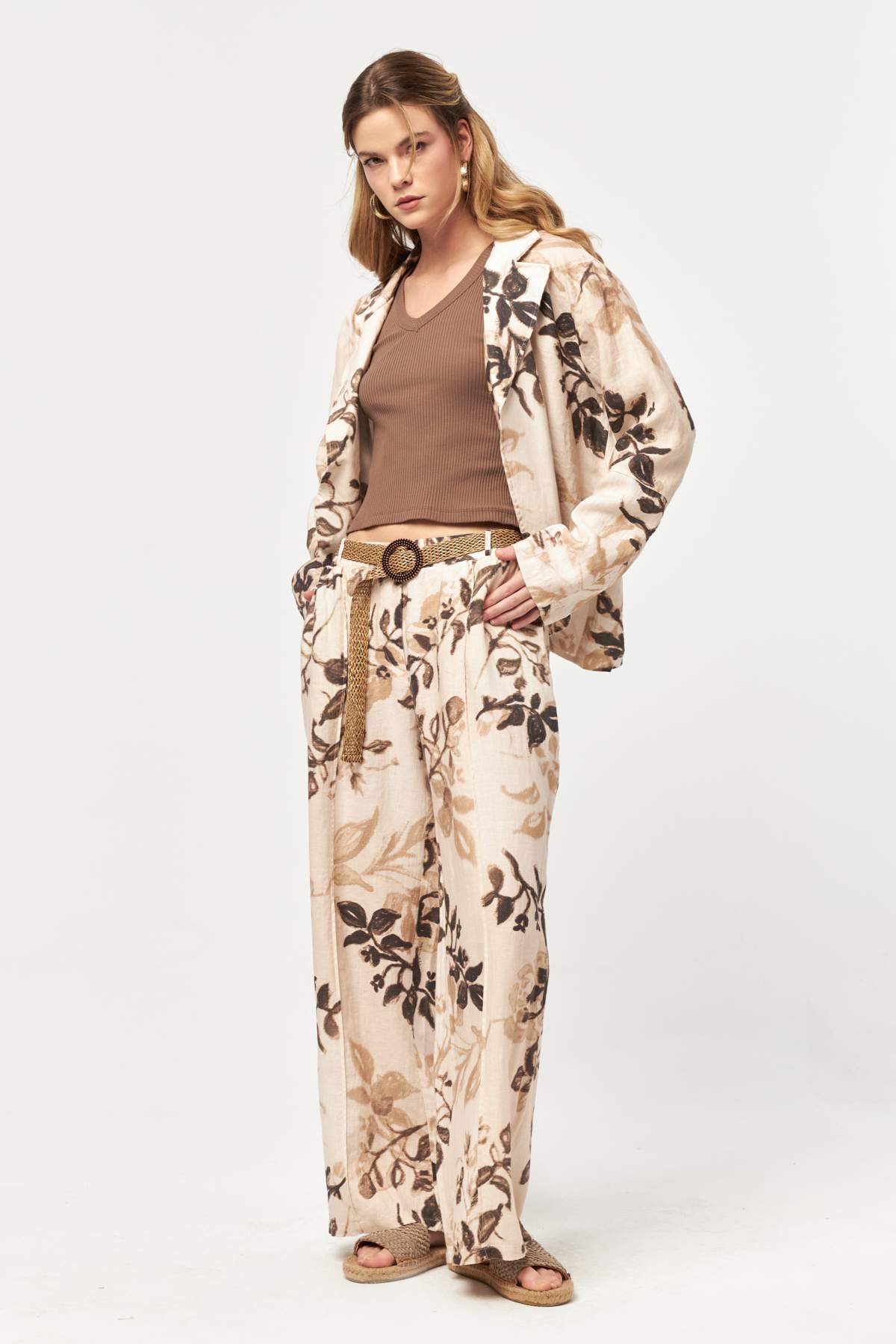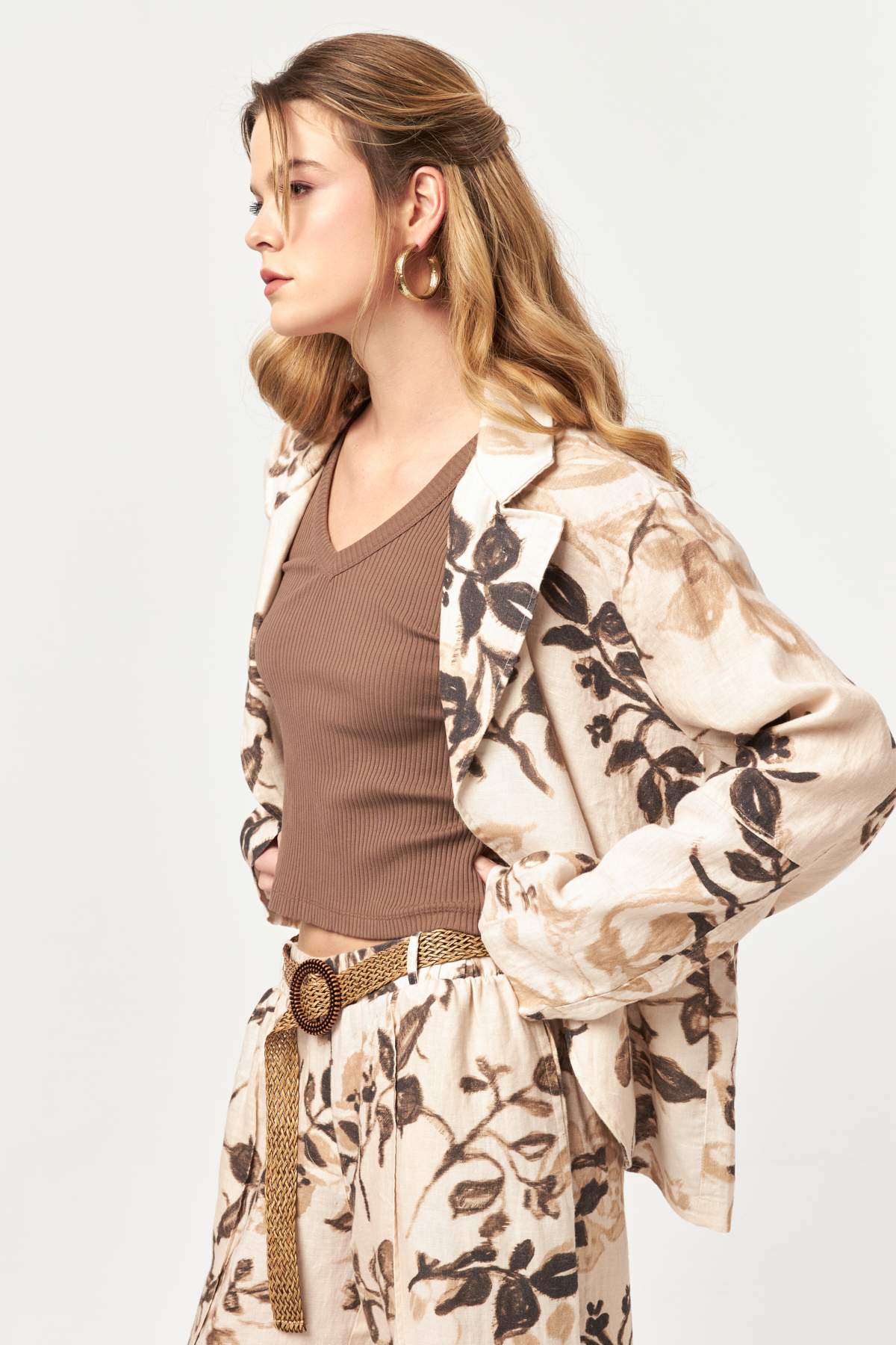 A refined layering piece from the Botanica collection, this linen jacket blends tailored lines with a soft, organic print. Designed in lightweight, breathable linen, it adds effortless elegance to summer looks while maintaining a relaxed, natural feel.