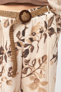 Designed to complement the Botanica story, these linen pants feature an elegant all-over leaf print and a relaxed silhouette. The self-fabric woven belt, designed as part of the pants, adds a natural accent while offering a refined, effortless fit for warm-weather styling.