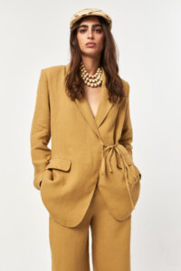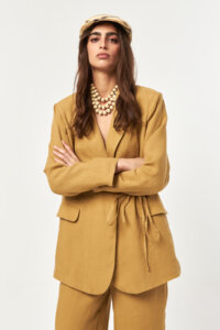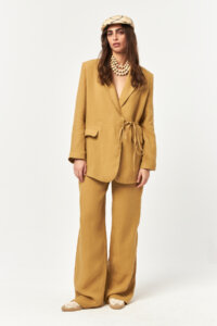 Designed with a refined yet relaxed silhouette, the Linen Tie-Detail Tailored Suit brings effortless elegance to warm-weather dressing. Crafted from 100% linen fabric, this suit offers a breathable, lightweight feel while maintaining a structured and polished look.