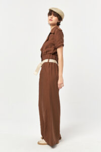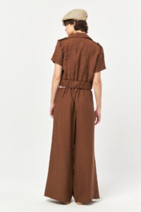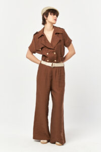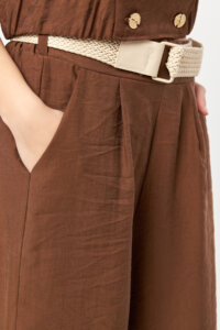 Featuring a matching self-fabric belt included with the pants, the waist can be defined and styled with a clean, adjustable tie. Side pockets add functional comfort without disrupting the minimal look, making this piece ideal for all-day wear and elevated summer styling—whether worn as a coordinated set or styled on its own.