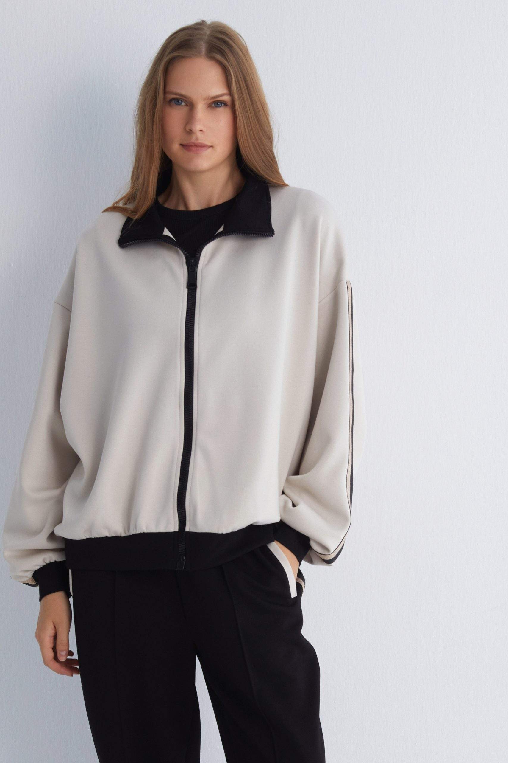 - Elastic cuffs and hem for added comfort and style