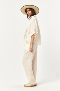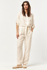 Clean and airy, the Ecru tone highlights the lightness of the breathable linen texture. The elasticated waist with adjustable drawstring and functional side pockets create an effortlessly relaxed silhouette, perfect for fresh and timeless summer styling.