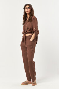 Warm and rich, the Nesquik tone adds depth to the natural linen texture with a sun-kissed finish. The elasticated waist with adjustable drawstring and functional side pockets come together for an effortlessly relaxed silhouette, perfect for easy summer styling.