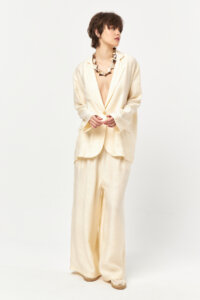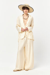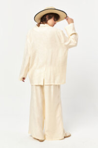 Designed in a soft ecru-toned jacquard fabric, Snuff Jacquard Drawstring Wide-Leg Pants – Ecru offer a light and refined expression of the relaxed silhouette. The subtle woven texture adds depth and softness, while the airy shade highlights the fabric’s natural drape.