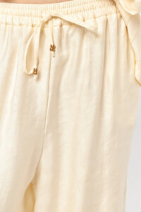 Ecru Jacquard Drawstring Wide-Leg Pants