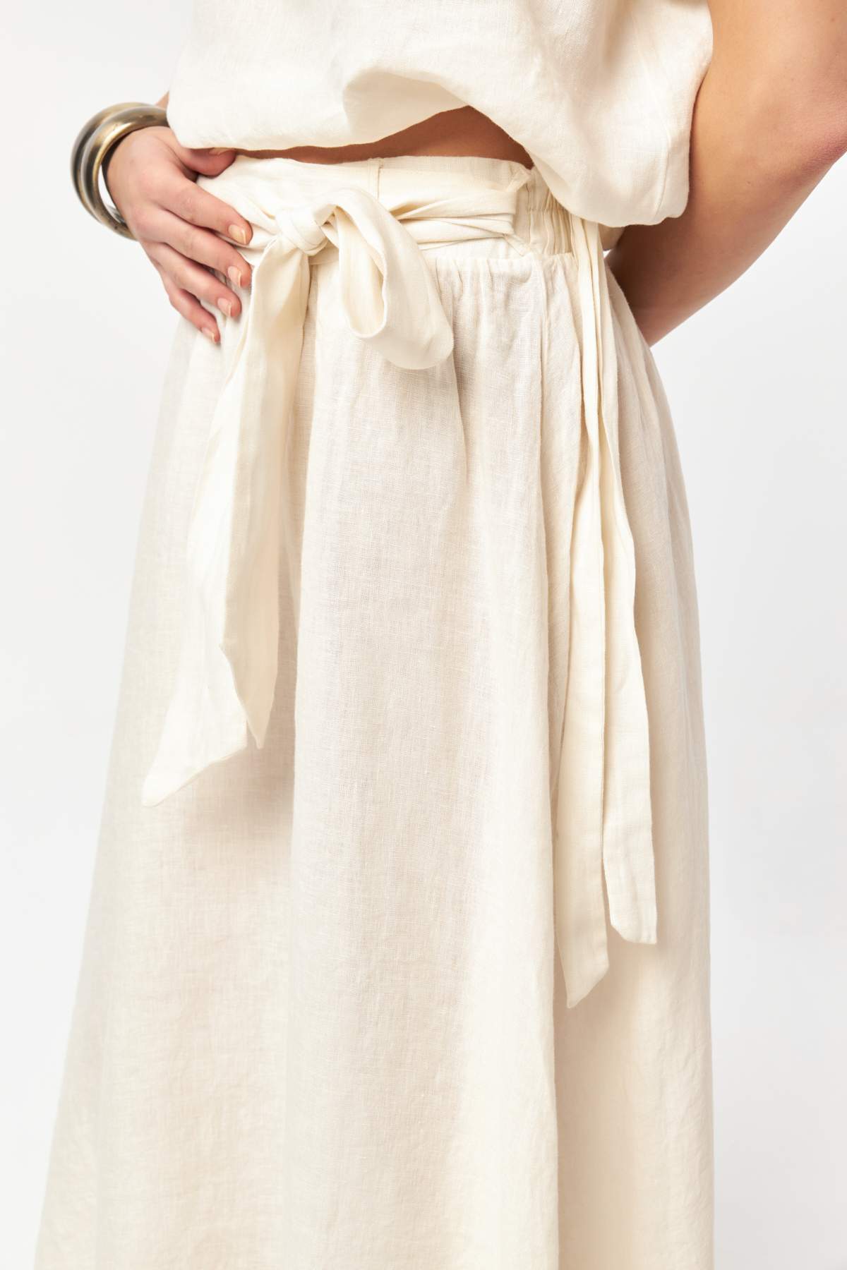 Ecru Linen Tie-Waist Skirt