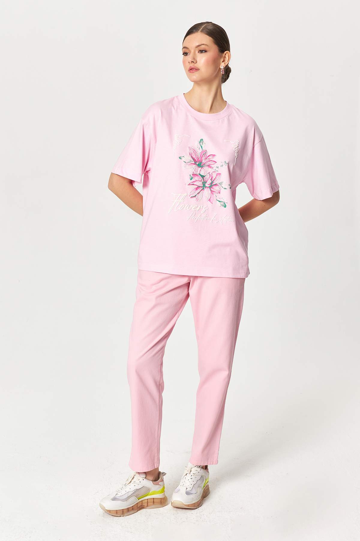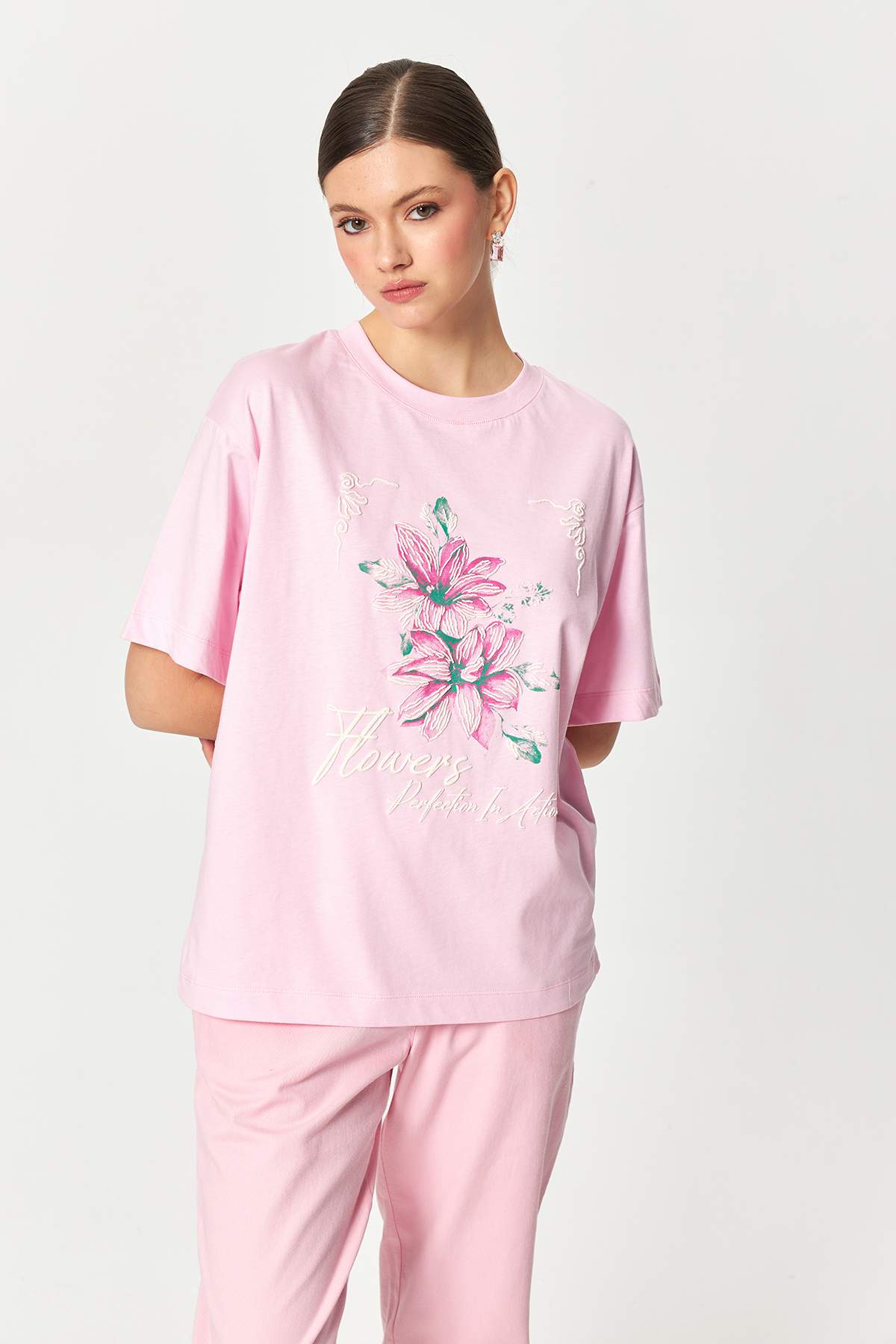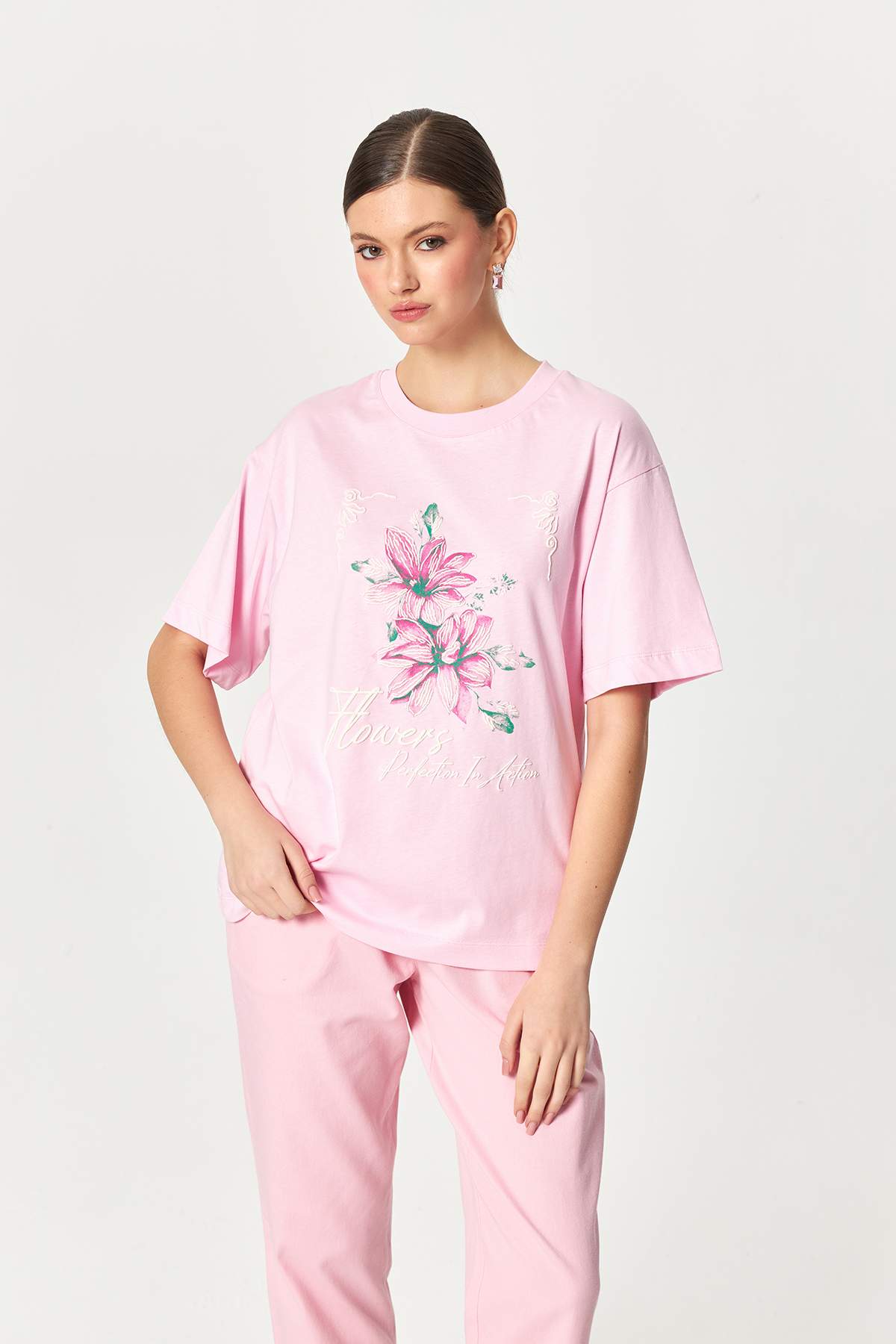 Floral Sketch Cotton Pink T-shirt