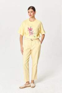 Floral Sketch Cotton Yellow T-shirt