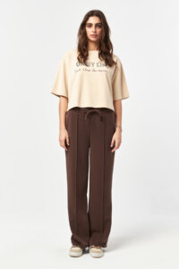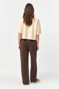 The deep bitter tone adds a rich, modern character, making it easy to style with neutral basics or coordinated tops for a polished, relaxed look.