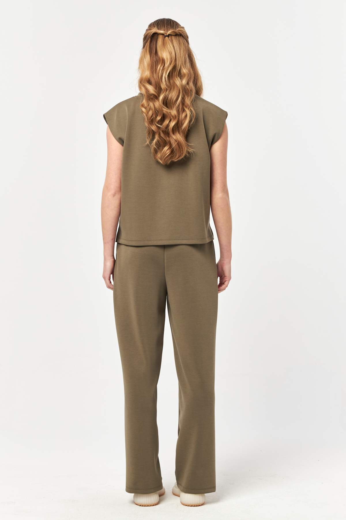 The khaki tone adds a modern, earthy touch, making it easy to style with neutral tops or matching pieces for a coordinated look.