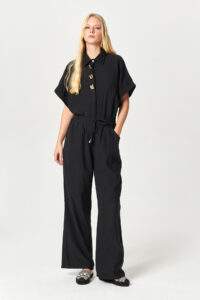 - Wide-leg silhouette