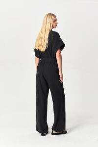 Fluid Drawstring Wide-Leg Black Pants