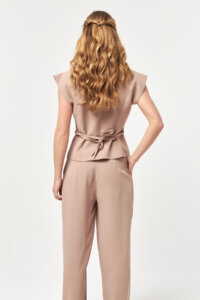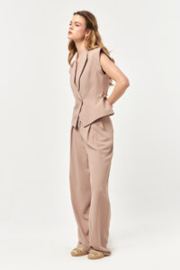 Fluid Sleeveless Tailored Beige Suit
