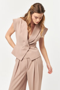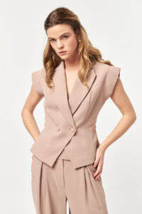 - Sleeveless tailored vest with double-breasted closure