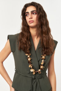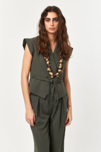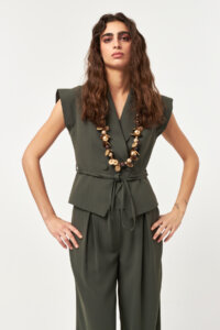 - Sleeveless tailored vest with double-breasted closure