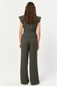 Fluid Sleeveless Tailored Khaki Suit