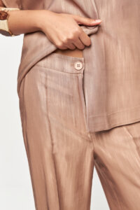 The Cocoa tone adds depth and warmth to the Fluid Tailored Suit, bringing a refined, earthy elegance to its modern silhouette. This rich brown shade enhances the fabric’s natural texture, creating a soft visual movement that feels both grounded and sophisticated.