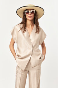 Effortless and versatile, this shade pairs seamlessly with both natural textures and minimal styling. Stone delivers a fresh, understated elegance—ideal for warm days and elevated everyday wear, while maintaining the confident simplicity of modern tailoring.