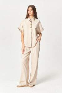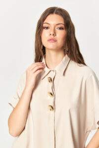 Gold Button Relaxed Beige Shirt
