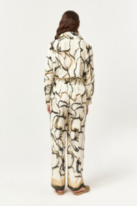 Green Off White Abstract Flow Drawstring Pants
