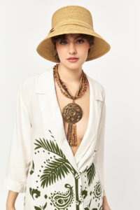 - Sustainability:Crafted with viscose and linen, this piece reflects Flamenco’s commitment to using breathable, plant-based fibers. The natural composition supports a lighter environmental footprint while offering comfort, durability, and timeless summer appeal.