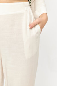 The softly structured blazer features a relaxed lapel and fluid drape, while the wide-leg trousers create natural movement with every step. Together, the set delivers a balanced blend of ease and sophistication—ideal for resort wear, summer gatherings, and elevated everyday styling.