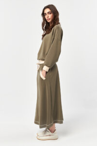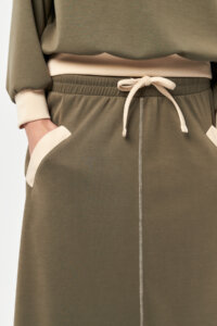 The straight midi–maxi cut and contrast pocket detailing add a subtle athleisure touch, making it ideal for relaxed city looks, travel days, or casual off-duty styling.