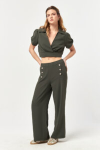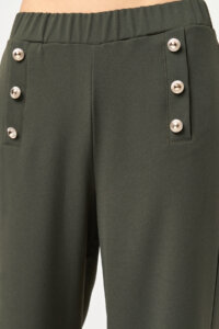 Decorative side button details add a subtle design accent, enhancing the minimalist look. With a pocket-free construction, the silhouette remains smooth and refined—ideal for contemporary, polished outfits.