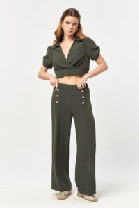 The khaki tone enhances its modern, earthy appeal—ideal for refined co-ord looks and elevated everyday styling.