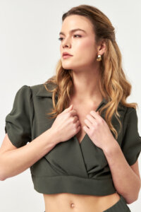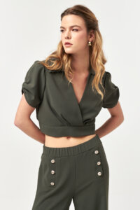 Khaki Sculpt Wrap Blouse