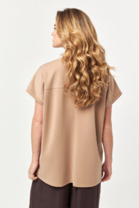 - Short sleeves with softly structured finish