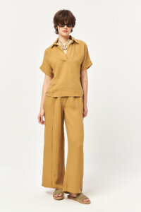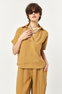 Rich and sun-kissed, the Caramel tone brings warmth to the natural linen texture with a soft, earthy glow. The polo-inspired open collar adds a relaxed refinement, making it a versatile piece for effortless day-to-evening summer styling.