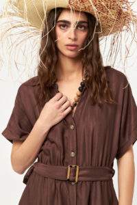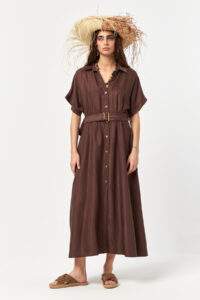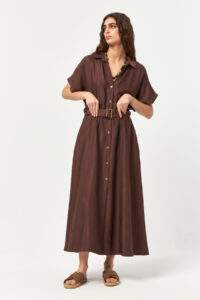 Luna Flow Belted Brown Long Dress