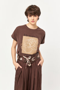 A relaxed-fit bitter t-shirt featuring a refined placement floral print, crafted from a soft and breathable TENCEL™ blend for a smooth feel and effortless everyday style.