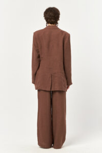 Rendered in a warm Nesquik brown tone, this linen tailored suit delivers a rich, earthy elegance with a relaxed modern feel.
