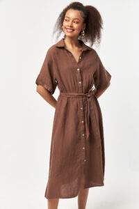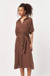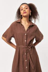 Nesquick Linen Tie-Waist Shirt Dress