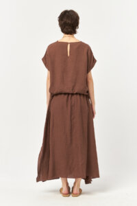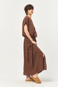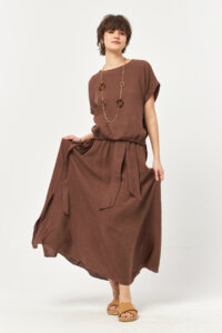 Finished in a soft nesquik tone, this linen skirt brings a warm, earthy softness to summer dressing. The lightweight, breathable linen fabric moves effortlessly with the body, while the adjustable waist tie ensures relaxed comfort. A subtle side slit adds fluidity and ease, creating a naturally refined silhouette for everyday wear.