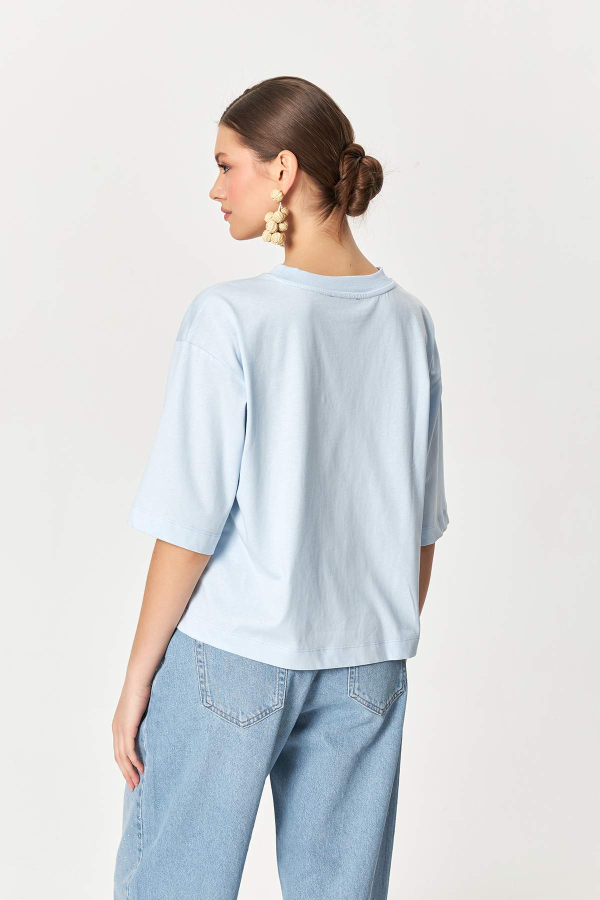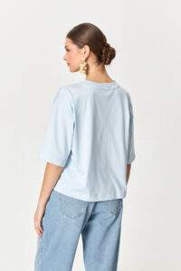 - Short sleeves with dropped shoulder effect