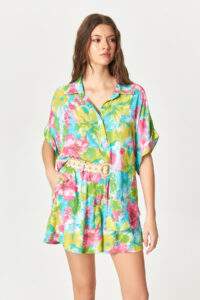 Painterly Floral Print Short Sleeve Shirt