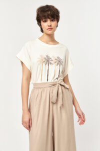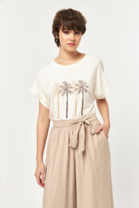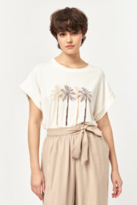 Palm Escape Placement Print Off White T-Shirt