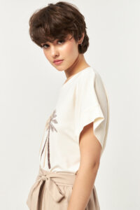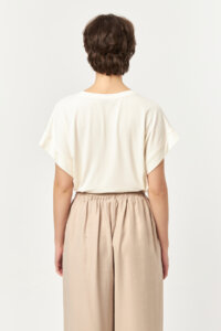 - Short sleeves with soft folded edges
