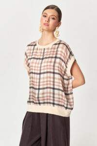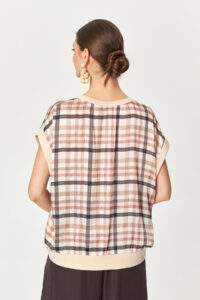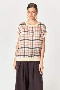 Pink Grid Block Plaid Top
