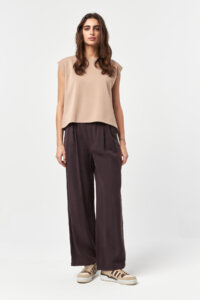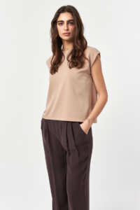 Designed with a modern, minimal attitude, Power Flow Beige Sleeveless Modal T-Shirt offers a clean silhouette with a strong, structured shoulder line.